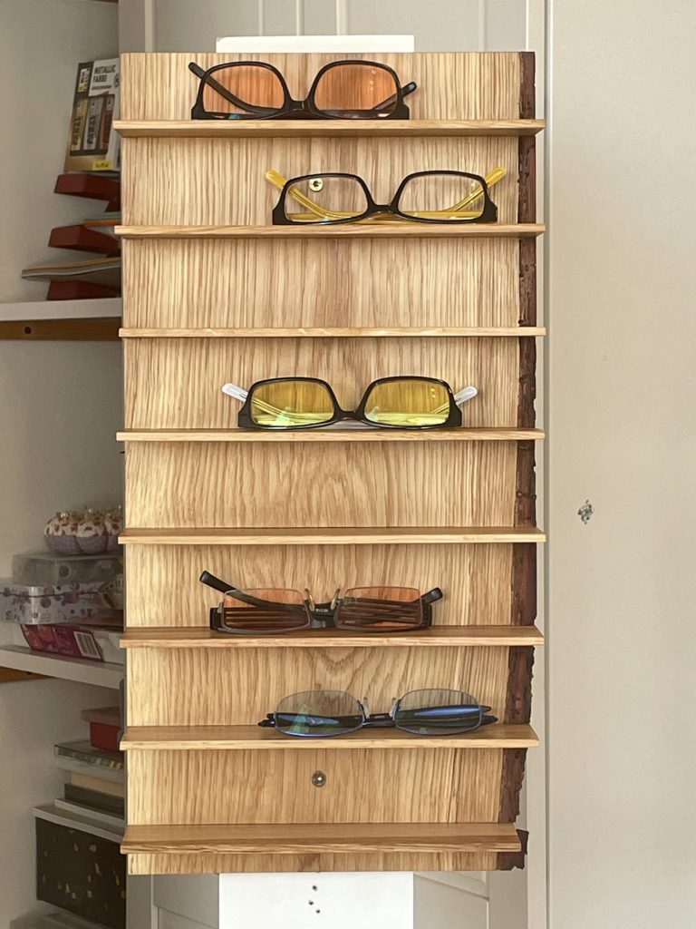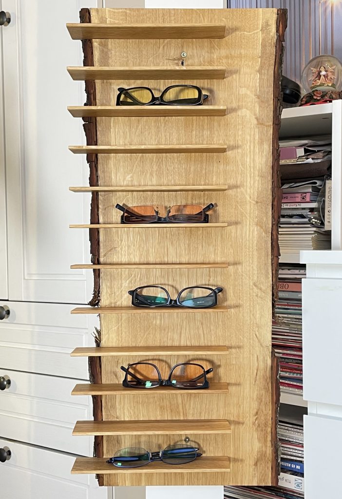Alle unsere Brillenregale werden aus lokalen Holz gefertigt. Liebevoll von Hand erstellt, gehobelt und mit dem richtigen Finish versehen. Aktuell bieten wir die Brillenregale hier in unserem Online-Shop und in unserem Etys-Shop an, schau Dich auch dort doch mal um.