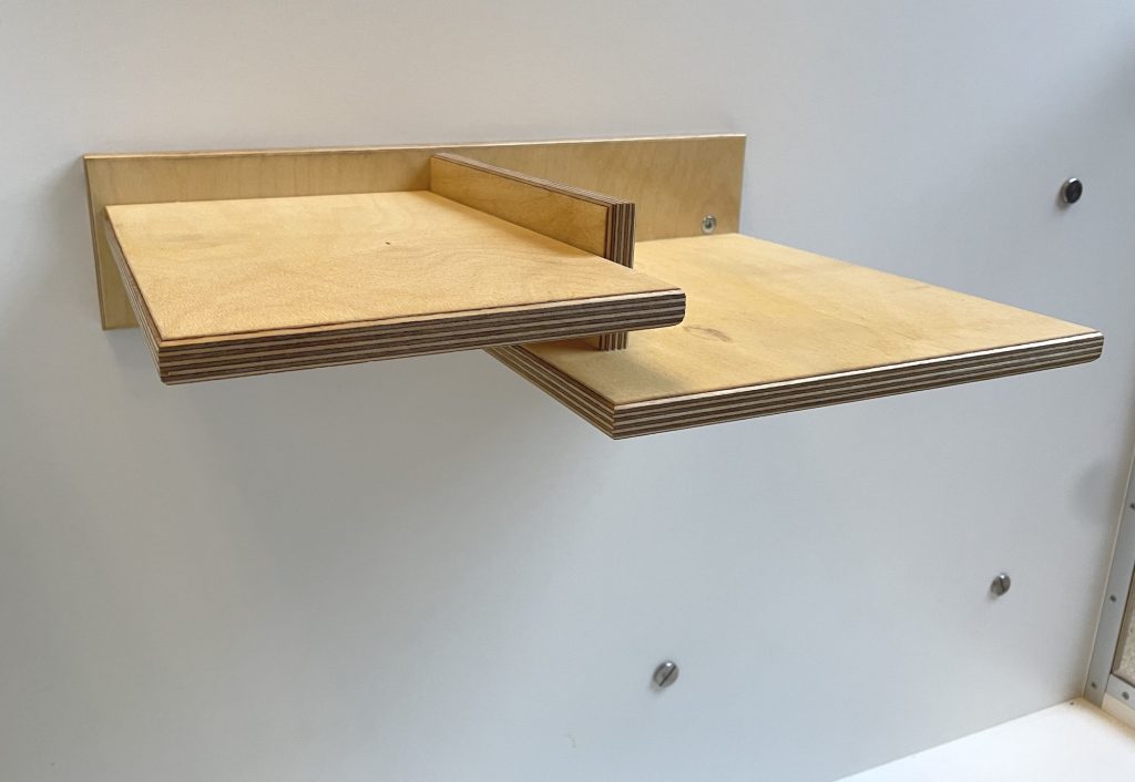 Das Rückwandbefestigungssystem ist einmalig auf dem Markt. In der Rückwand sind Befestigungspunkte eingelassen, an denen du nach belieben Elemente deiner Wahl befestigen kannst. Dies können Ebenen, Spielzeug, Getränkehalter oder Adapter wie z.B. unser Laufradadapter sein.