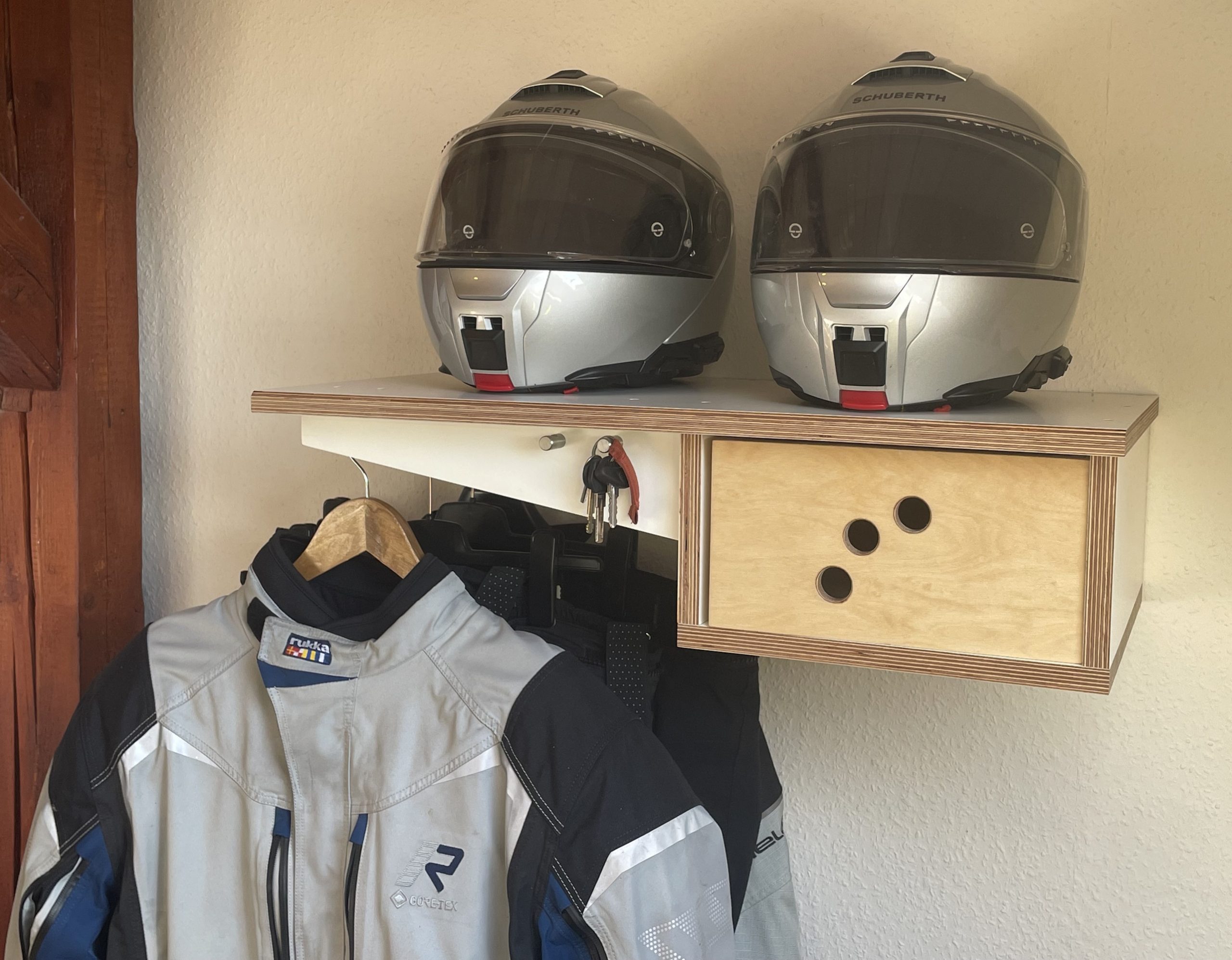 Mit dieser hoch stylischen Bikergarderobe hast du deine Motorradklamotten bestens untergebracht. Sie bietet Platz für zwei Ausrüstungen, die man typischerweise für das Motorradfahren hat: