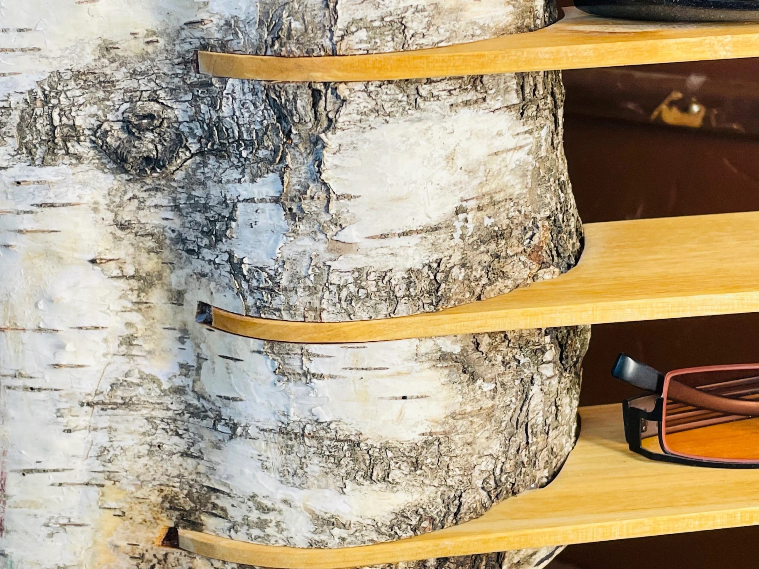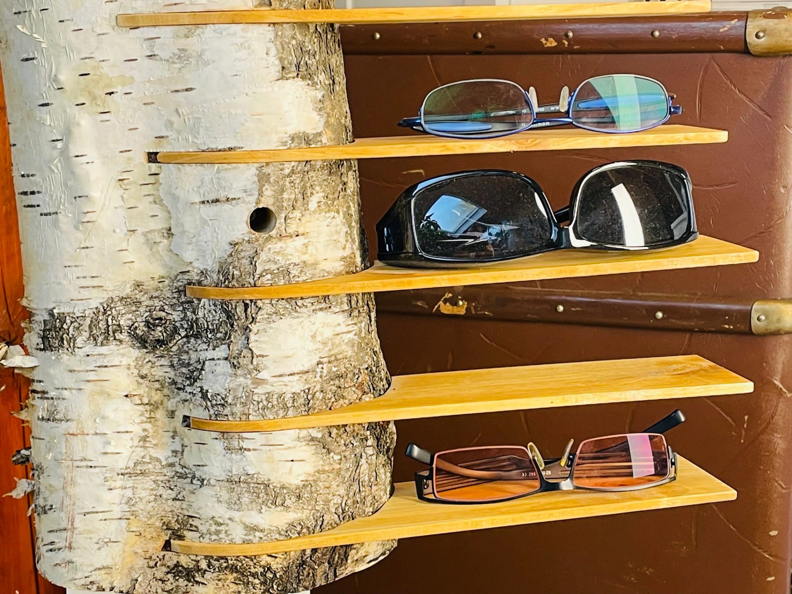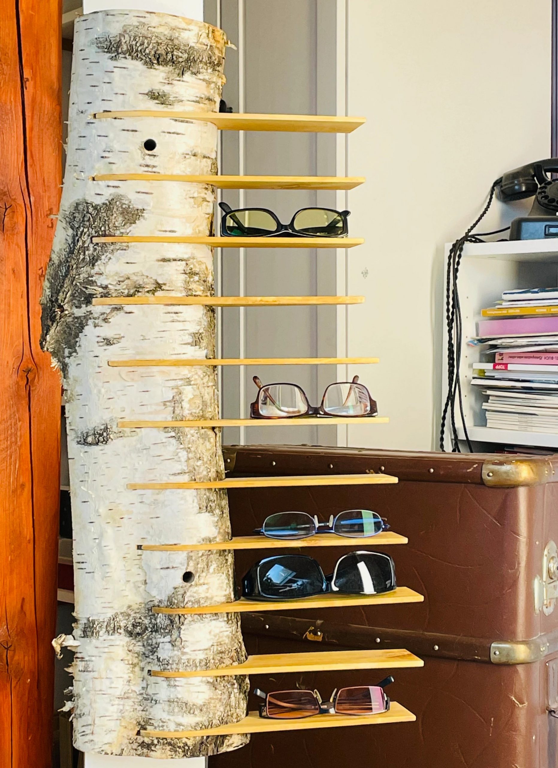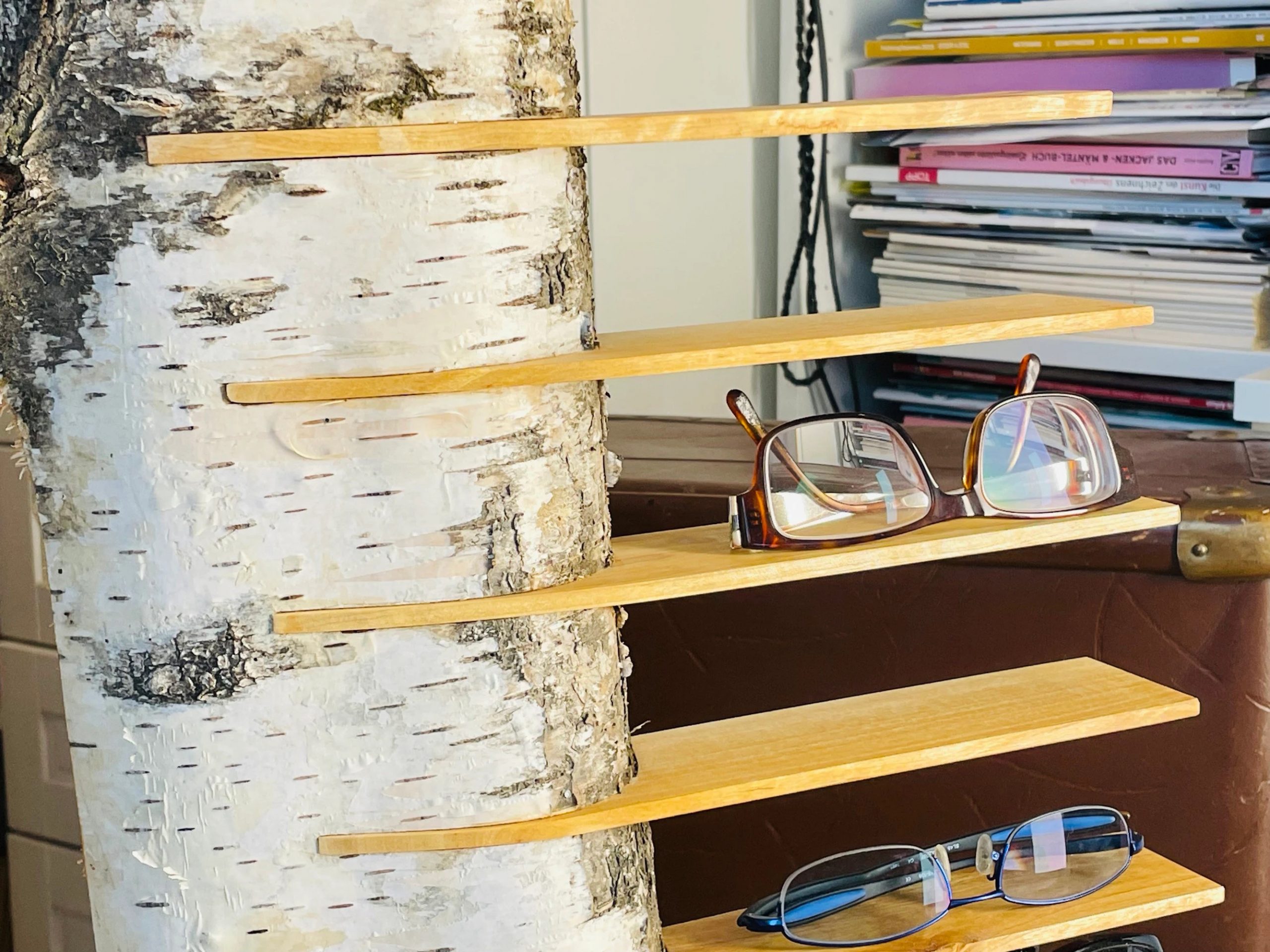 Das Brillenregal Birte ist ein ganz besonderes Unikat , ein natürlicher Birkenstamm mit 11 edel gehobelten Birkenbrettchen. Vorbei die Zeit, in der man all seine Brillen gesucht hat, nun ist alles an einem schönen Platz. Das Brillenregal ist in deiner Wohnung ein absoluter Hingucker und gibt deiner Einrichtung das i-Tüpfelchen, deine Besucher und Freunde werden Augen machen und dich beneiden.