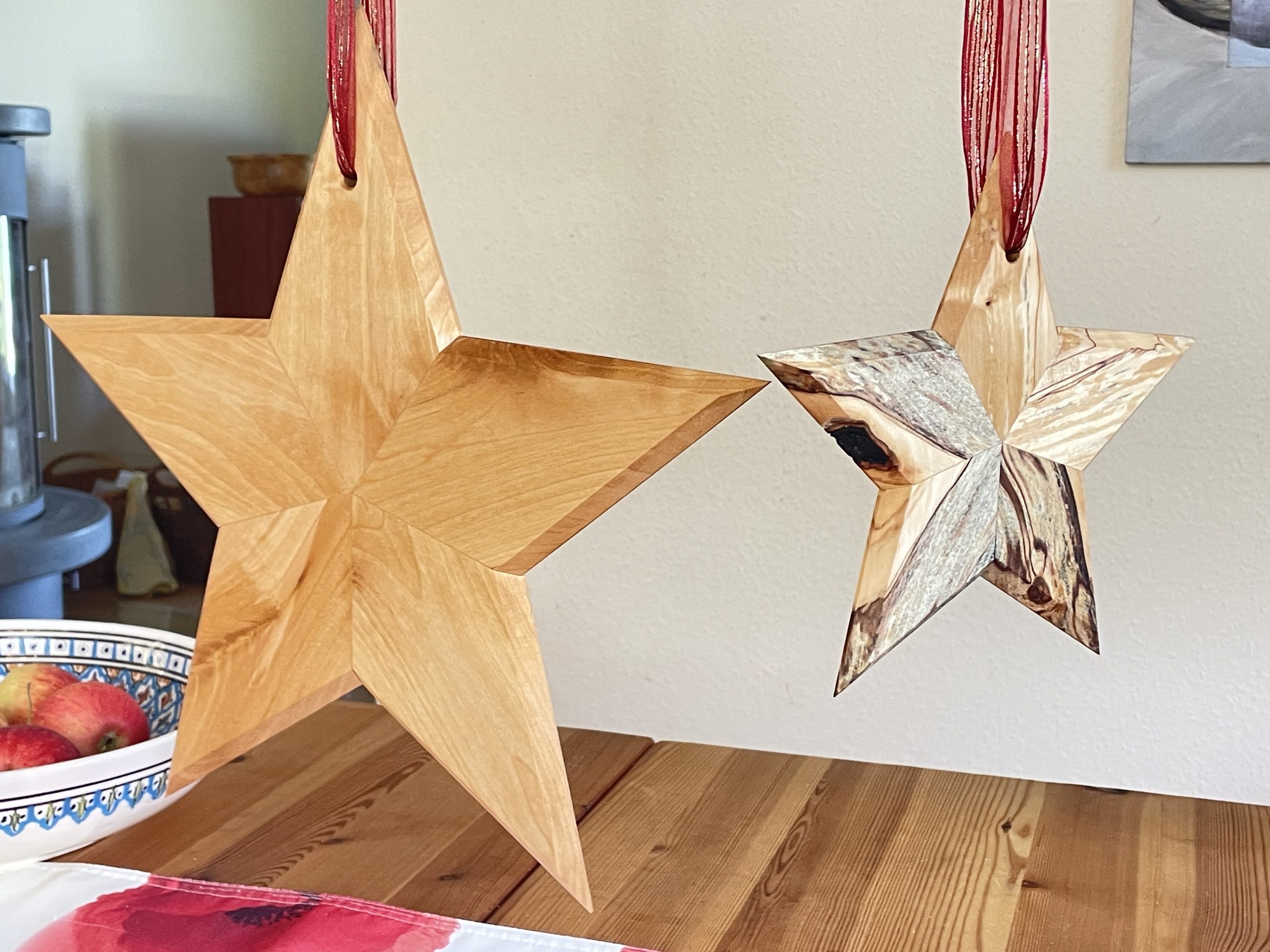 Bitte beachtet, dass die Maserung und Darbietung der Sterne immer wieder anders sein kann und es auch mal Fehlstellen (Astloch, Riss, ..) geben kann. Das sind eben richtig lebendige Sterne , die was zu erzählen haben.