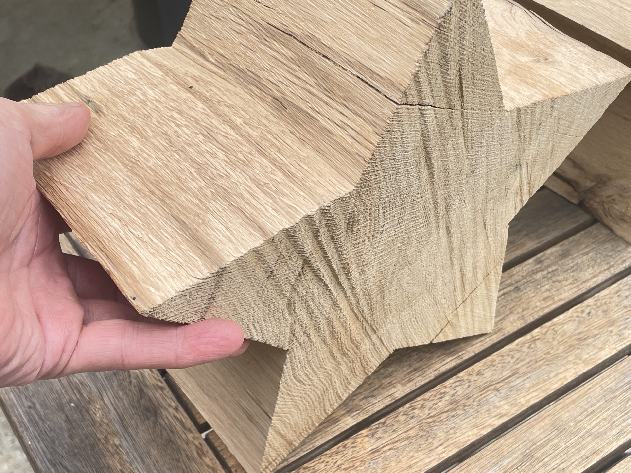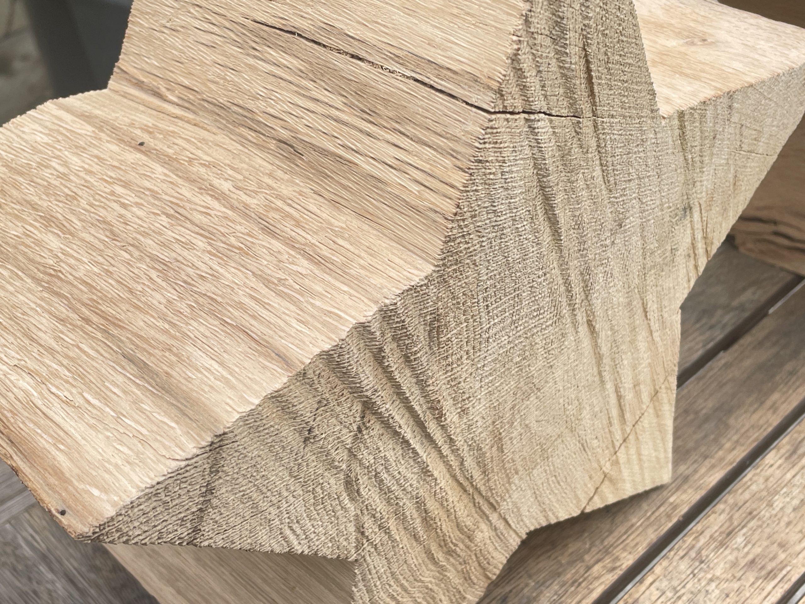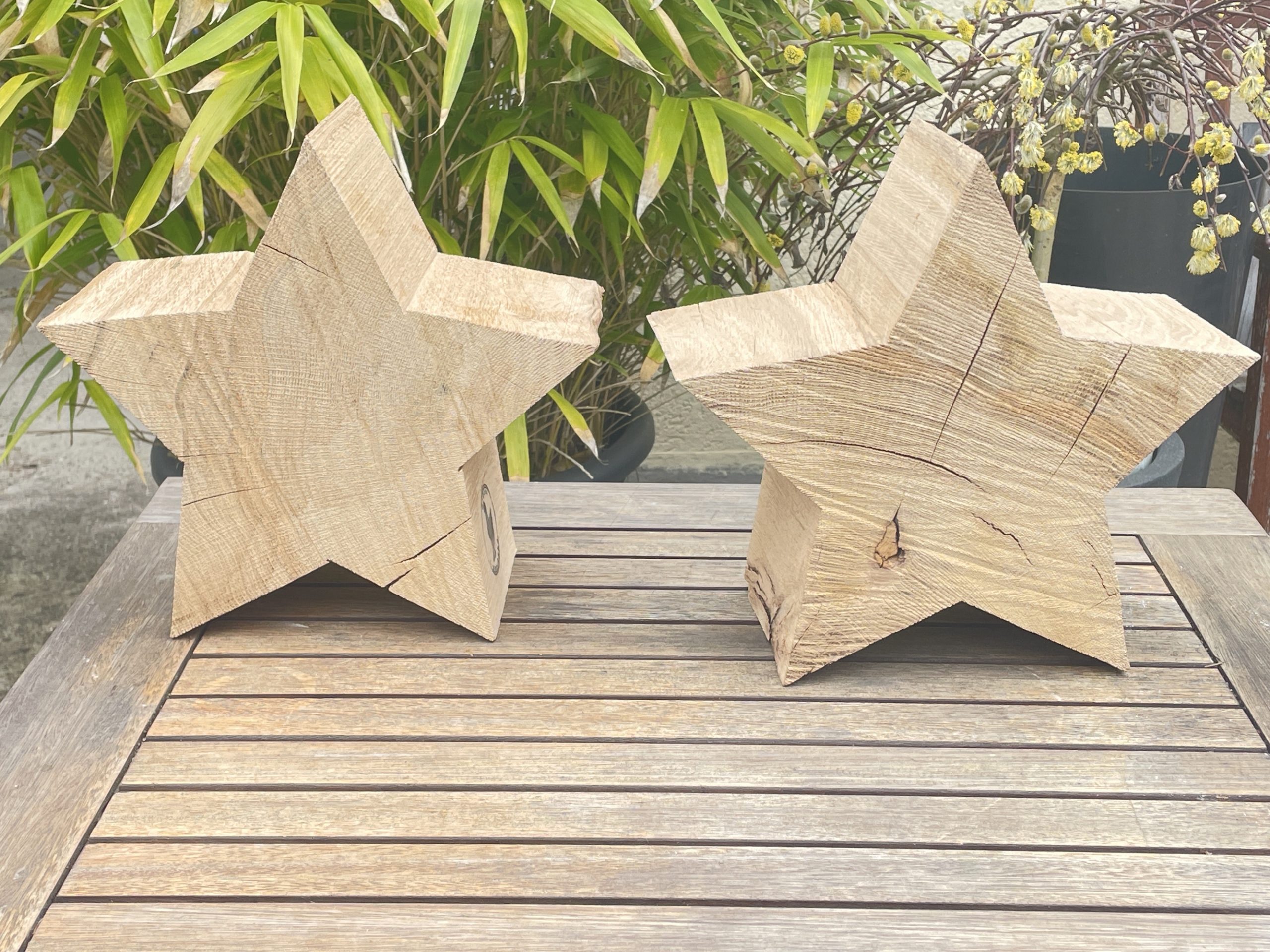 XL Eichensterne, diese haben eine ganz besondere Ausstrahlung. Die noch grobe Oberfläche von der Bearbeitung im Wald und in der Werkstatt, gepaart mit der naturbelassenen Oberfläche geben den Sternen das besondere Etwas. Zudem haben sie mit einem Spitzenkreisdurchmesser von 30 cm eine super Große: man kann sie gut auf den Boden stellen, aber auch auf dem Tisch oder der Kommode strahlen sie der ganzen Wohnung und deinen Besuchern entgegen.