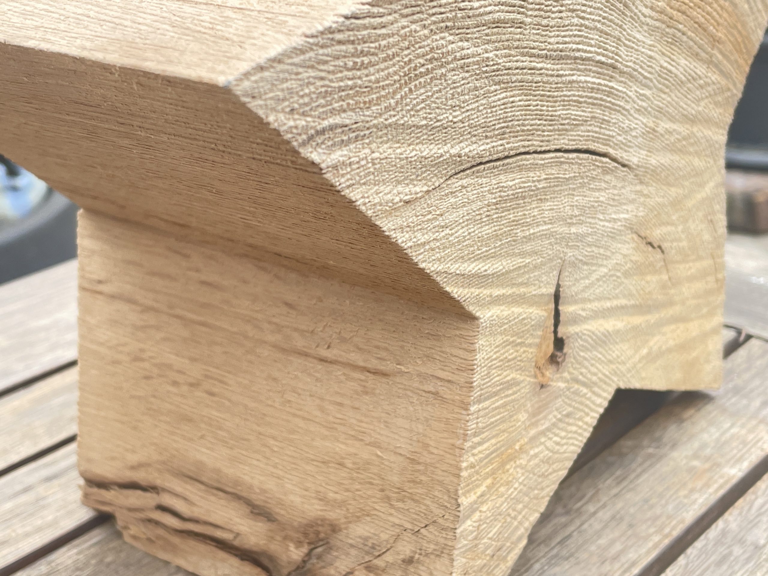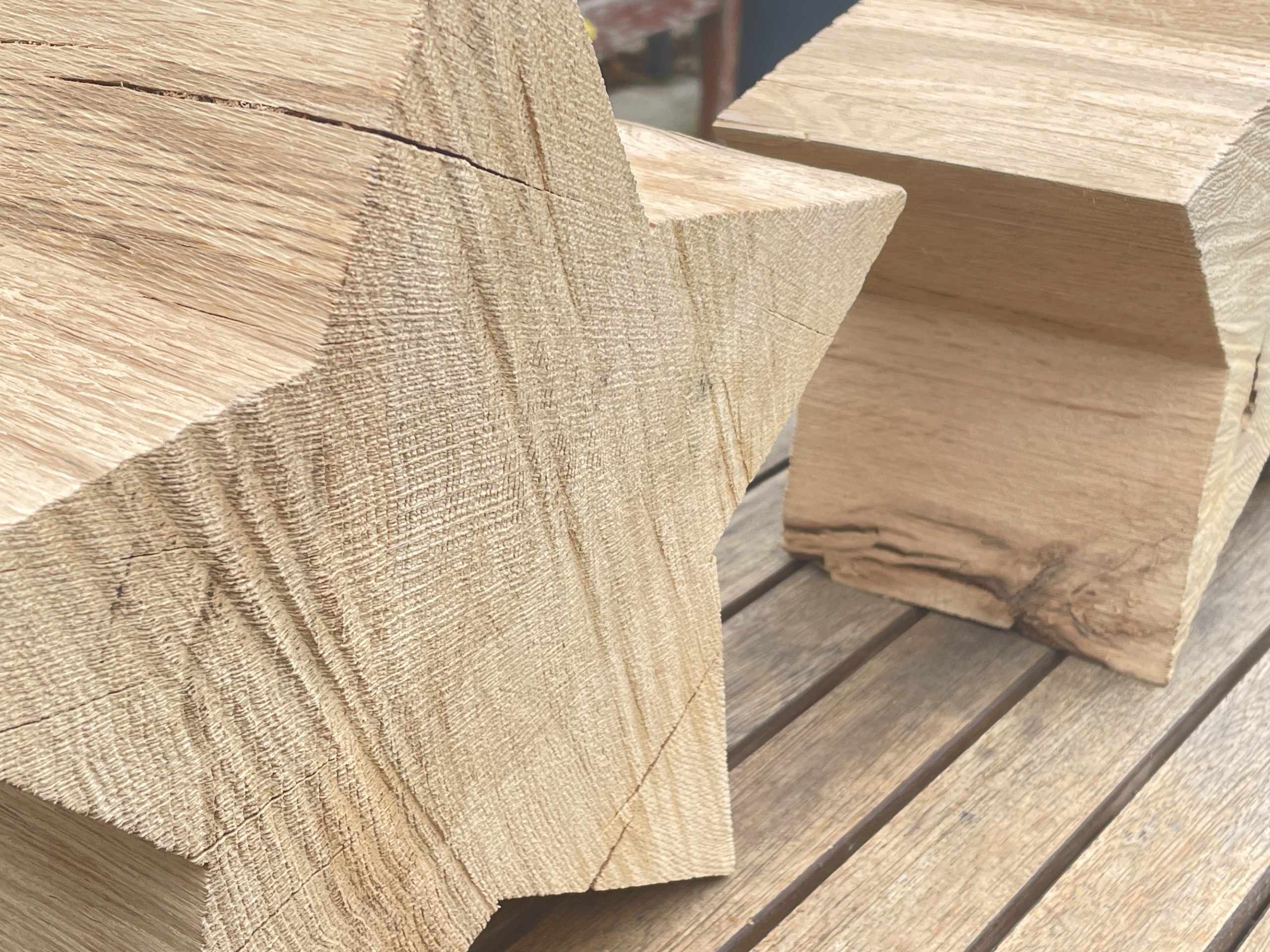 Das Eichenholz ist aus dem lokalen Wald selbst geschlagen und in der Werkstatt hergestellt.