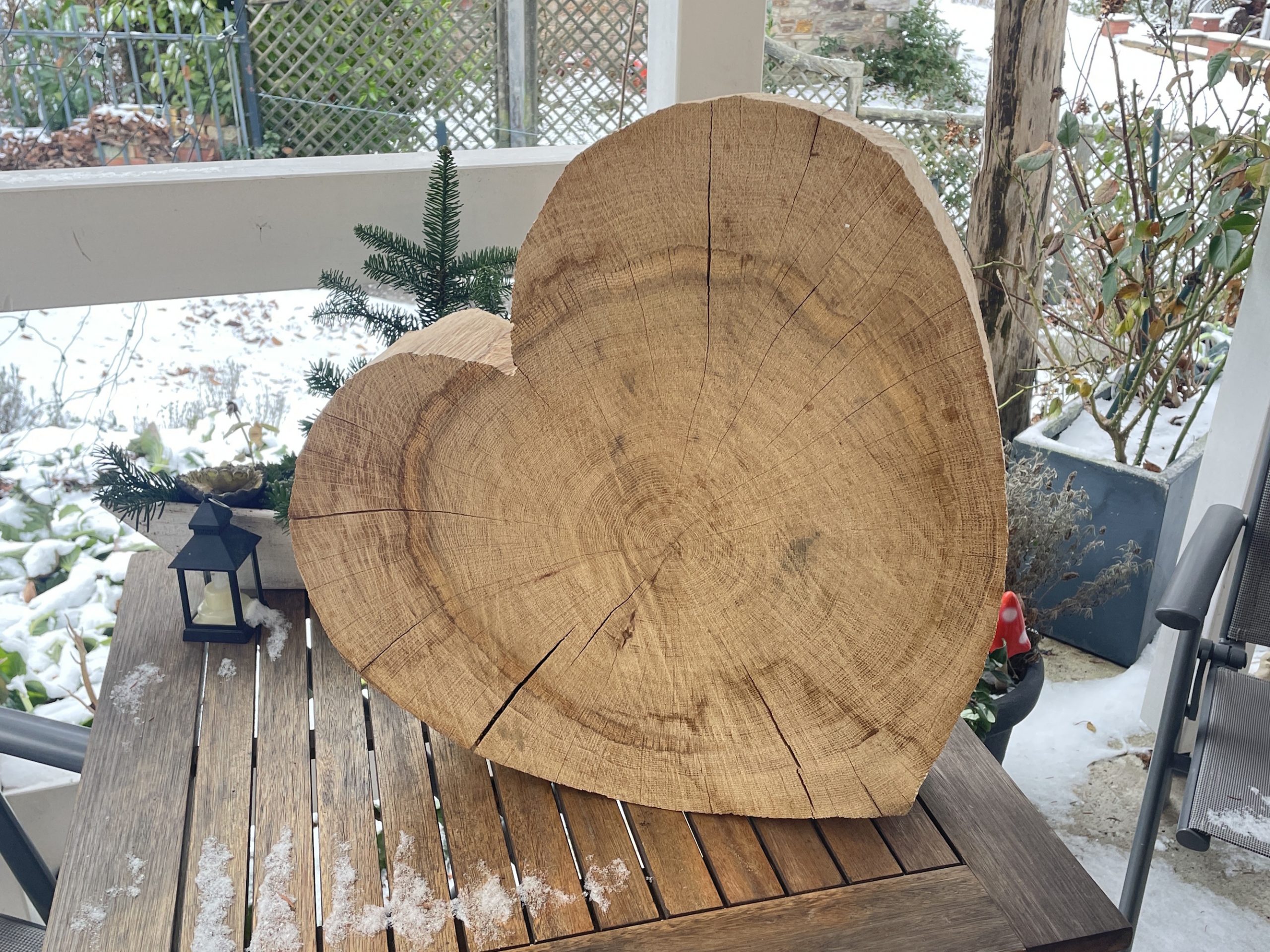 Absolut einmalige Herzen aus Eichenholz. Die Ausstrahlung dieser Herzen geht von charmant bis beeindruckend, man kann sich gar nicht entscheiden. Sie sind ein Hingucker, egal ob im Hauseingang oder in deiner Wohnung, deine Freunde werden Augen machen. Diese Herzen, besonders in dieser Größe, gibt es nicht noch einmal. Bist du ein Liebhaber des Besonderen, dann greif zu, viele Herzen wird es davon nicht geben.