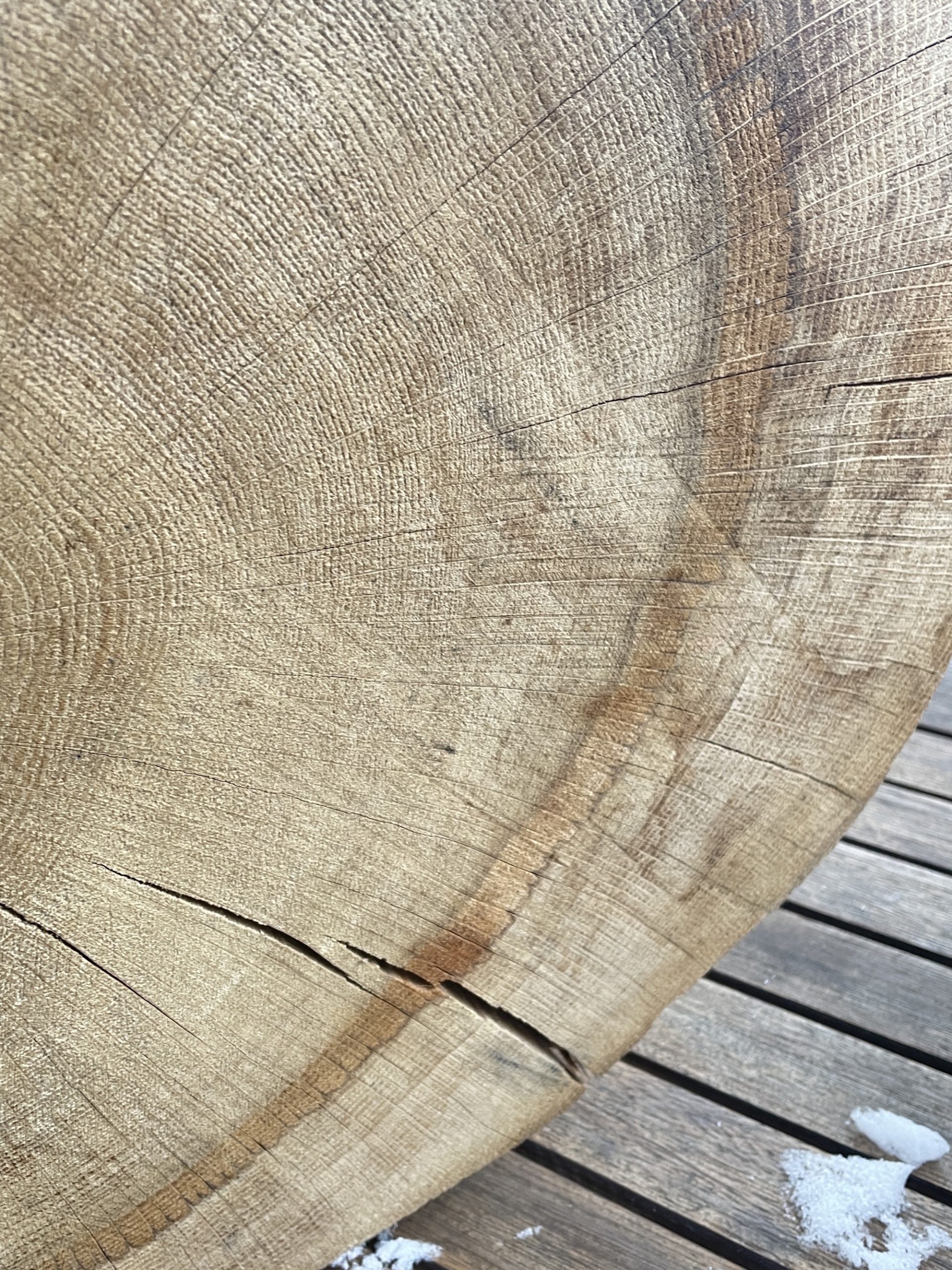 Bitte beachten: Holz ist ein natürlicher Werkstoff und kann bzw. wird nachtrocknen. Dieser Stern ist aus letztjährigem Holz und wird daher auch noch deutlich nachtrochen, dann auch Risse, auch deutliche Charakterrisse, aufzeigen können. Typischerweise bekommen diese Sterne neben vielen kleinen auch einen großen Hauptriss, der dann in Richtung Mitte weist.