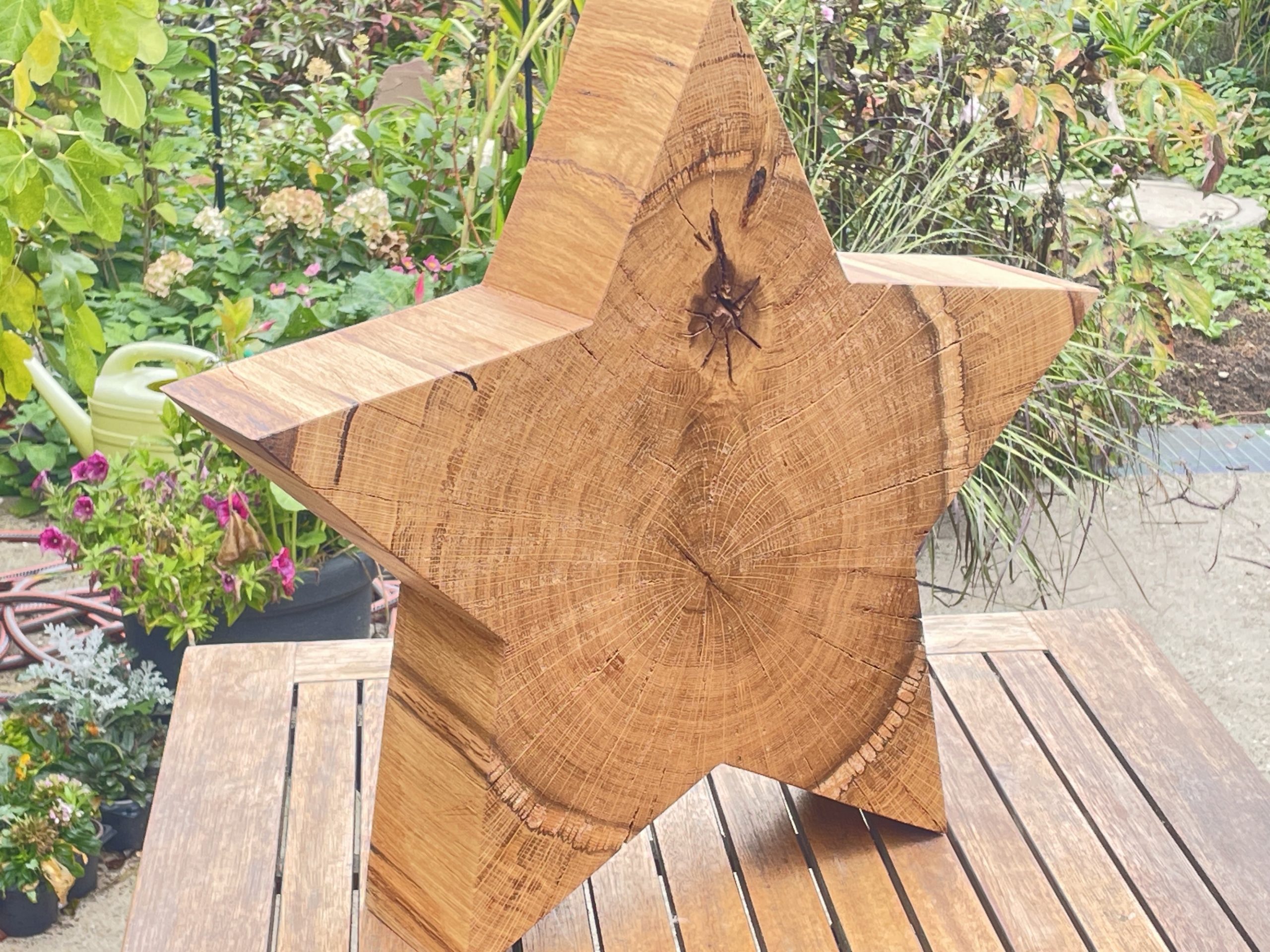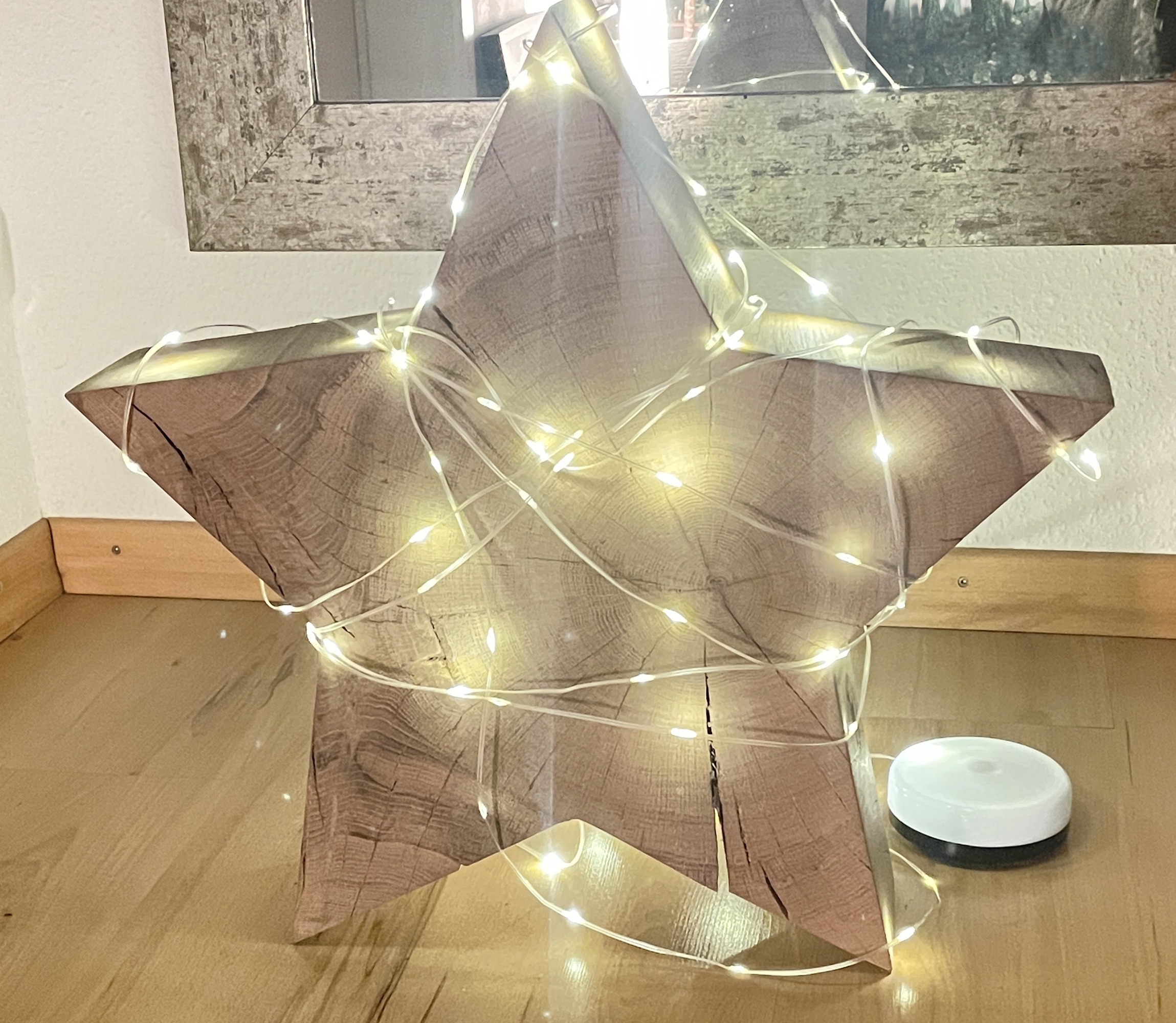 Wunderschöne, einmalige XXXL-Sterne aus Eichenholz, optional mit LED-Band. Das ist das besondere Stück in deiner Wohnungseinrichtung. Das Holz wurde selbst aus dem lokalen Wald geholt, die Baumscheibe exakt plan gefräst und dann sehr aufwendig feinst geschliffen. Somit konnte diese tolle Maserung der Eiche herausgearbeitet werden, es ist Balsam für die Augen. Hast du so einen schönen Stern schon einmal gesehen? Das ist nicht nur an Weihnachten der Hingucker in deiner Wohnung, deine Freunde sind neidisch auf das gute Stück. Eiche ist so ein tolles Holz.
