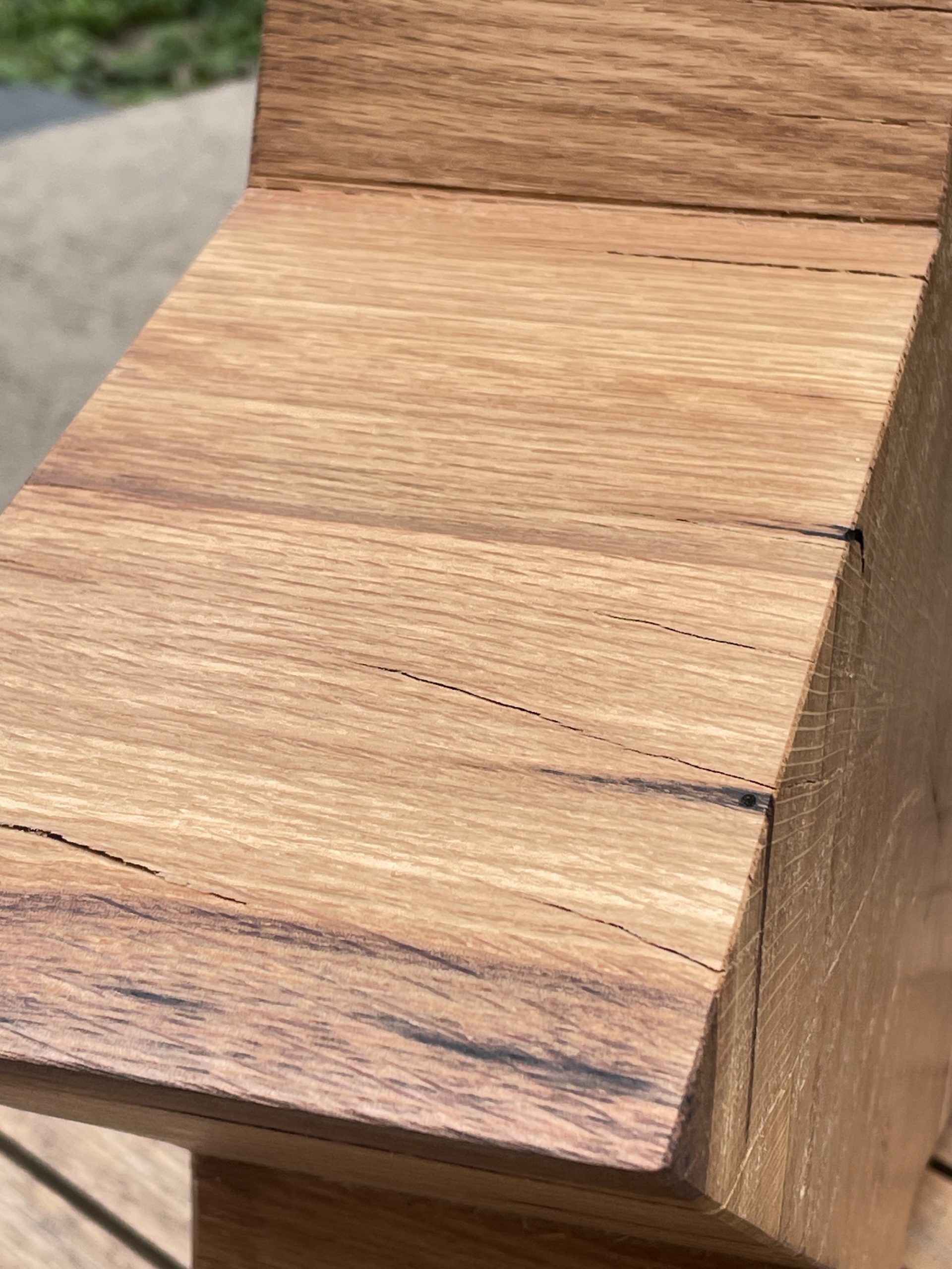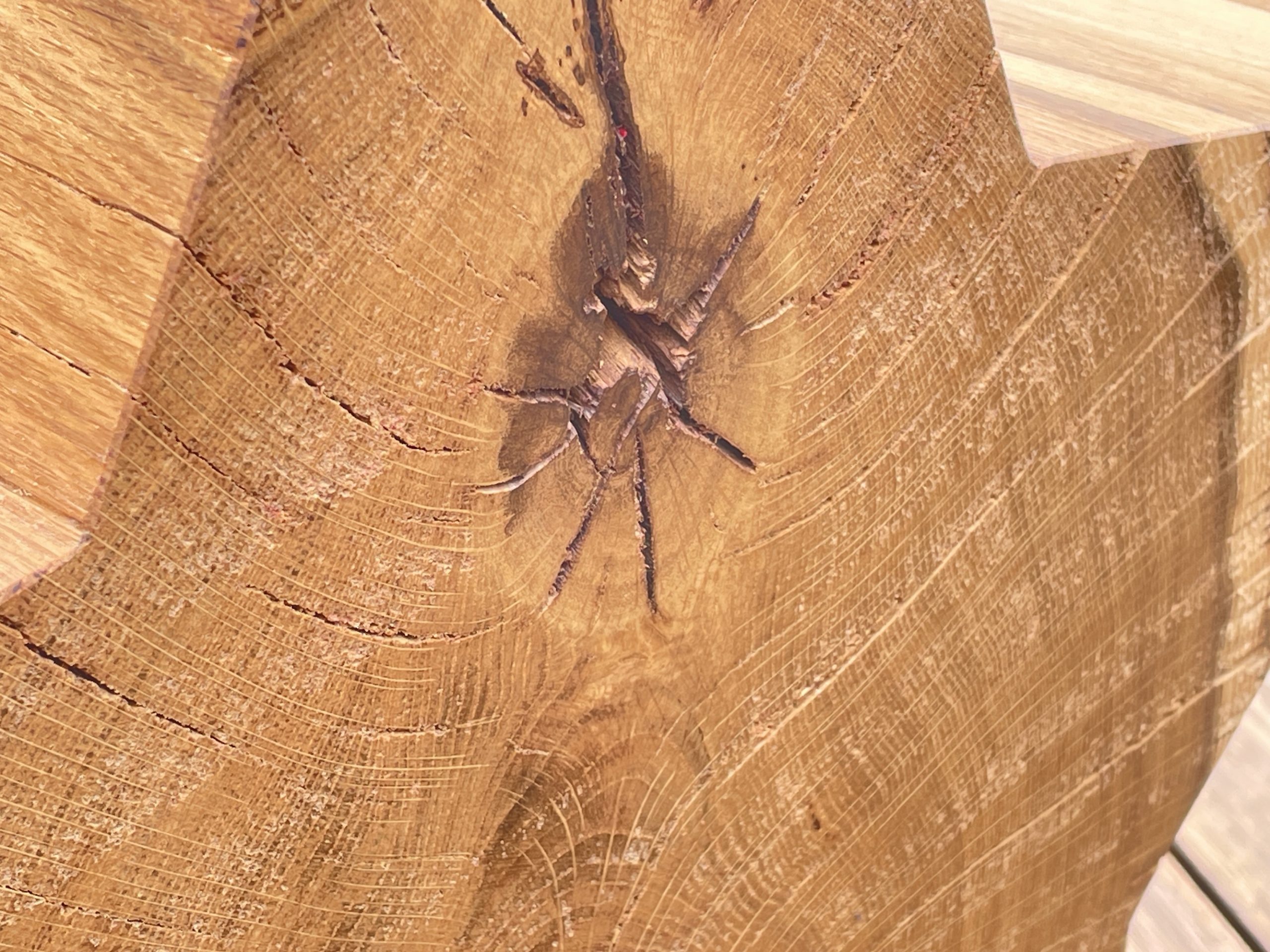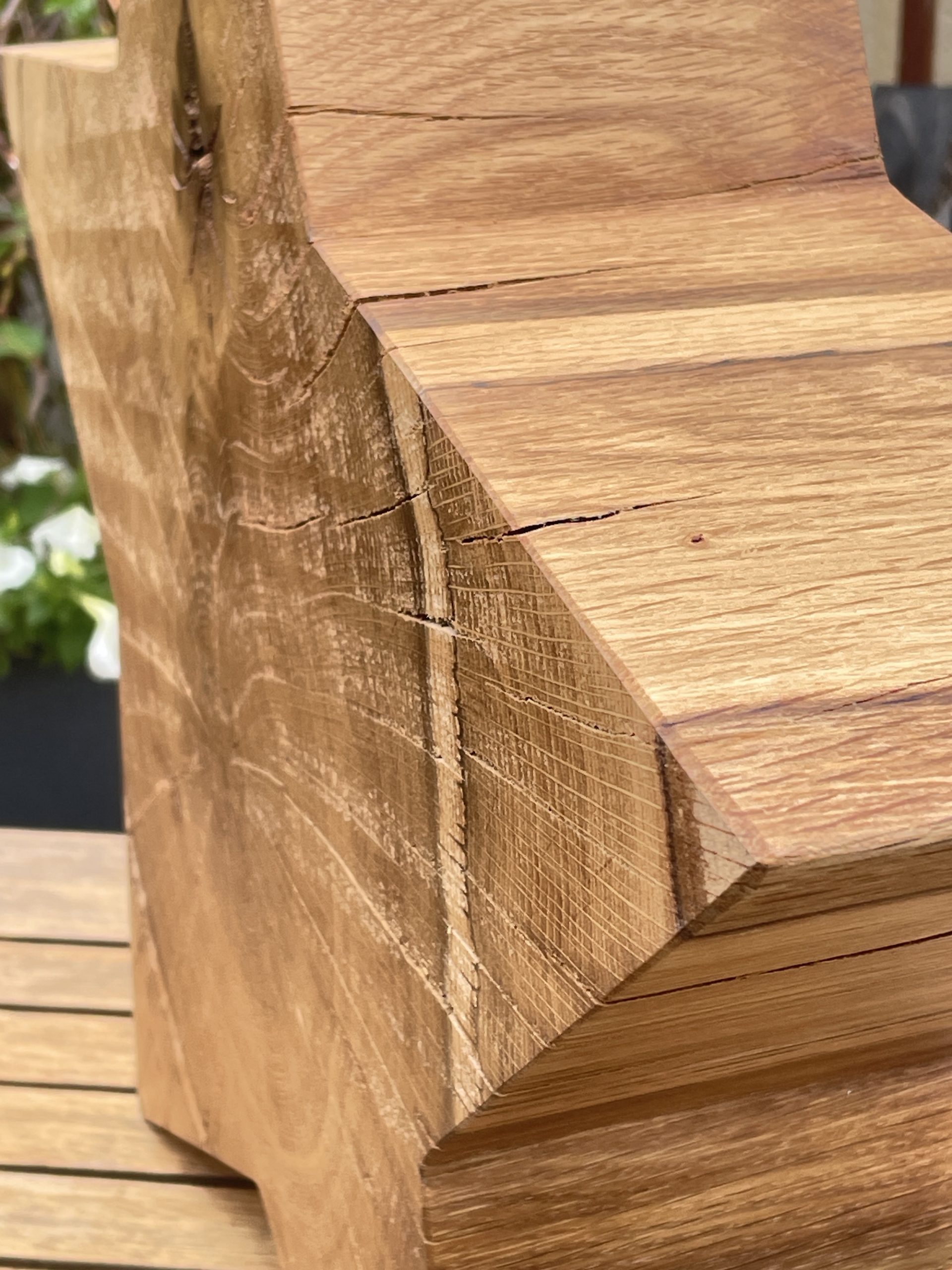 Bitte beachten: Holz ist ein natürlicher Werkstoff und kann bzw. wird nachtrocknen. Dieser Stern ist aus letztjährigem Holz und wird daher auch noch deutlich nachtrochen, dann auch Risse, auch deutliche Charakterrisse, aufzeigen können. Typischerweise bekommen diese Sterne neben vielen kleinen auch einen großen Hauptriss, der dann in Richtung Mitte weist.