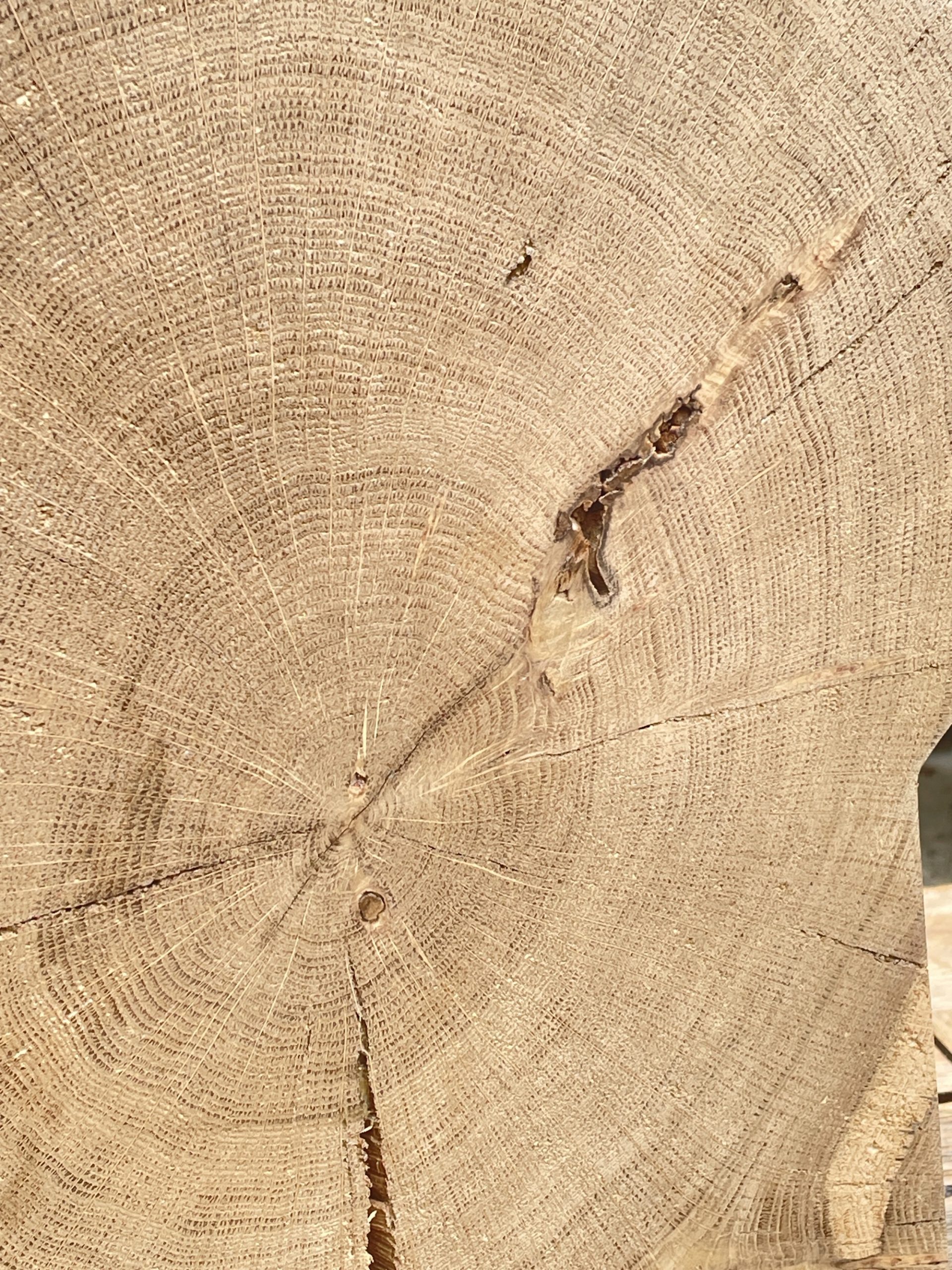 Bitte beachten: Holz ist ein natürlicher Werkstoff und kann bzw. wird nachtrocknen. Dieser Stern ist aus diesjährigem Holz und wird daher auch noch deutlich nachtrochen, dann auch Risse, auch deutliche Charakterrisse, aufzeigen. Typischerweise bekommen diese Sterne neben vielen kleinen auch einen großen Hauptriss, der dann in Richtung Mitte weist.