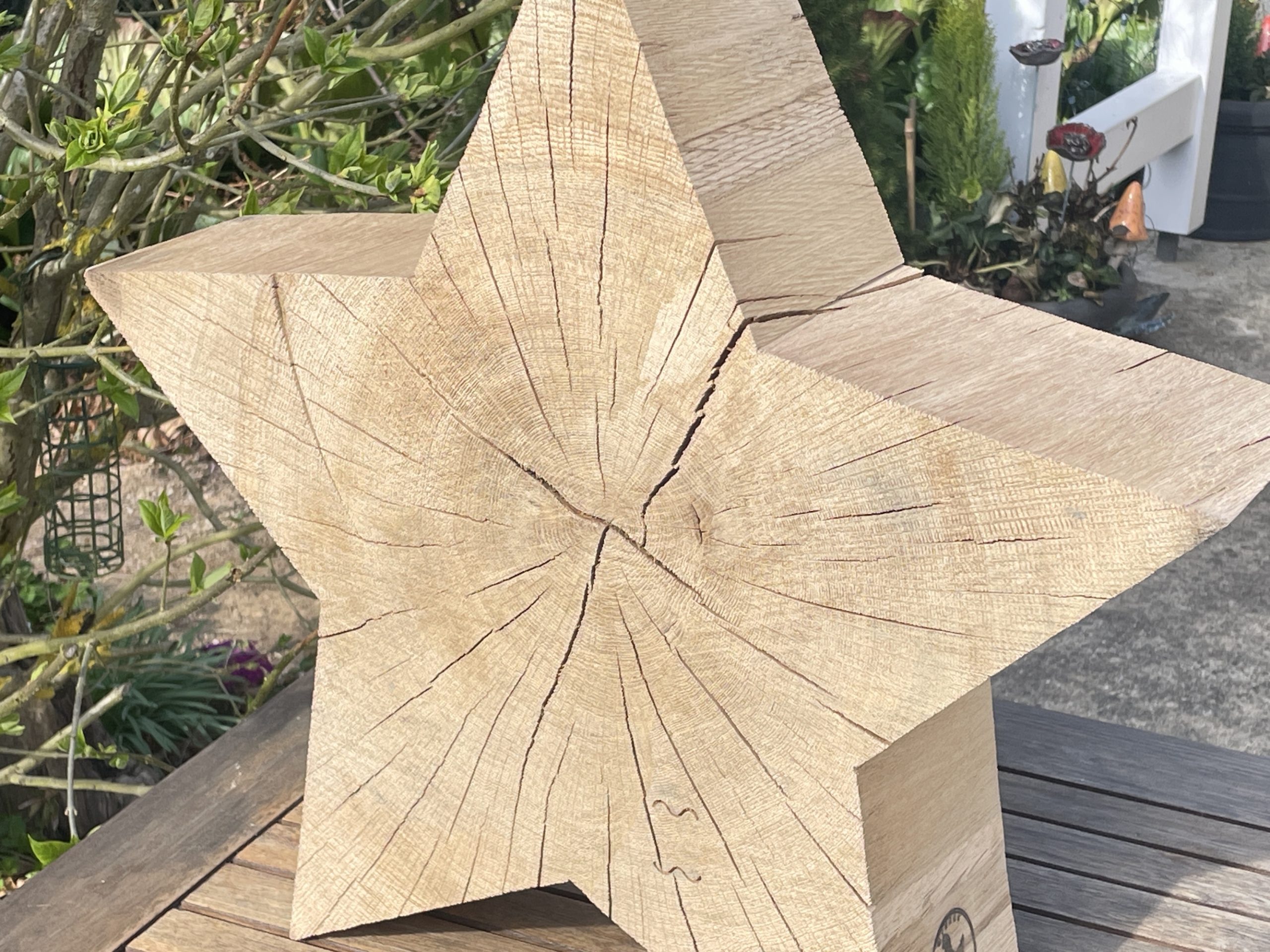 Wunderschöne, einmalige XXL-Sterne aus gebürstetem Eichenholz.